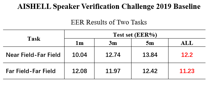 评分标准以1、3、5m混合测试集的EER结果做评测。