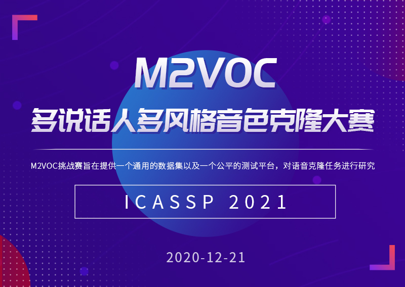 作为2021年声学、语音和信号处理国际会议(ICASSP2021)信号处理挑战旗舰任务之一,M2VoC挑战赛旨在提供一个通用的数据集以及一个公平的测试平台,对语音克隆任务进行研究。